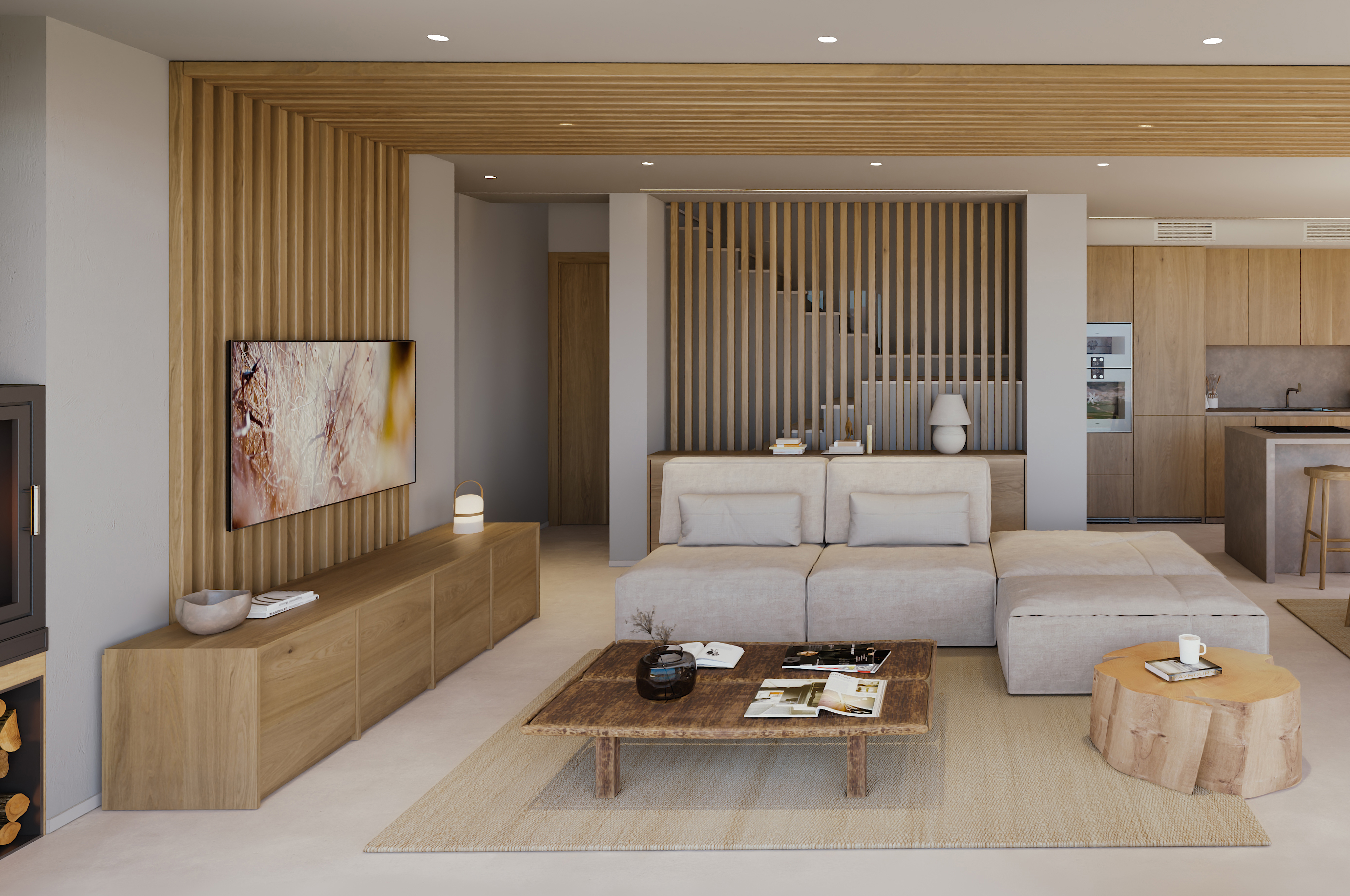 Auch das Innere folgt dieser Philosophie, mit klaren Linien, edlen Materialien wie Holz und einer sorgfältig ausgewählten Farbpalette, die das Gefühl von Wärme und Wohlbefinden verstärkt.